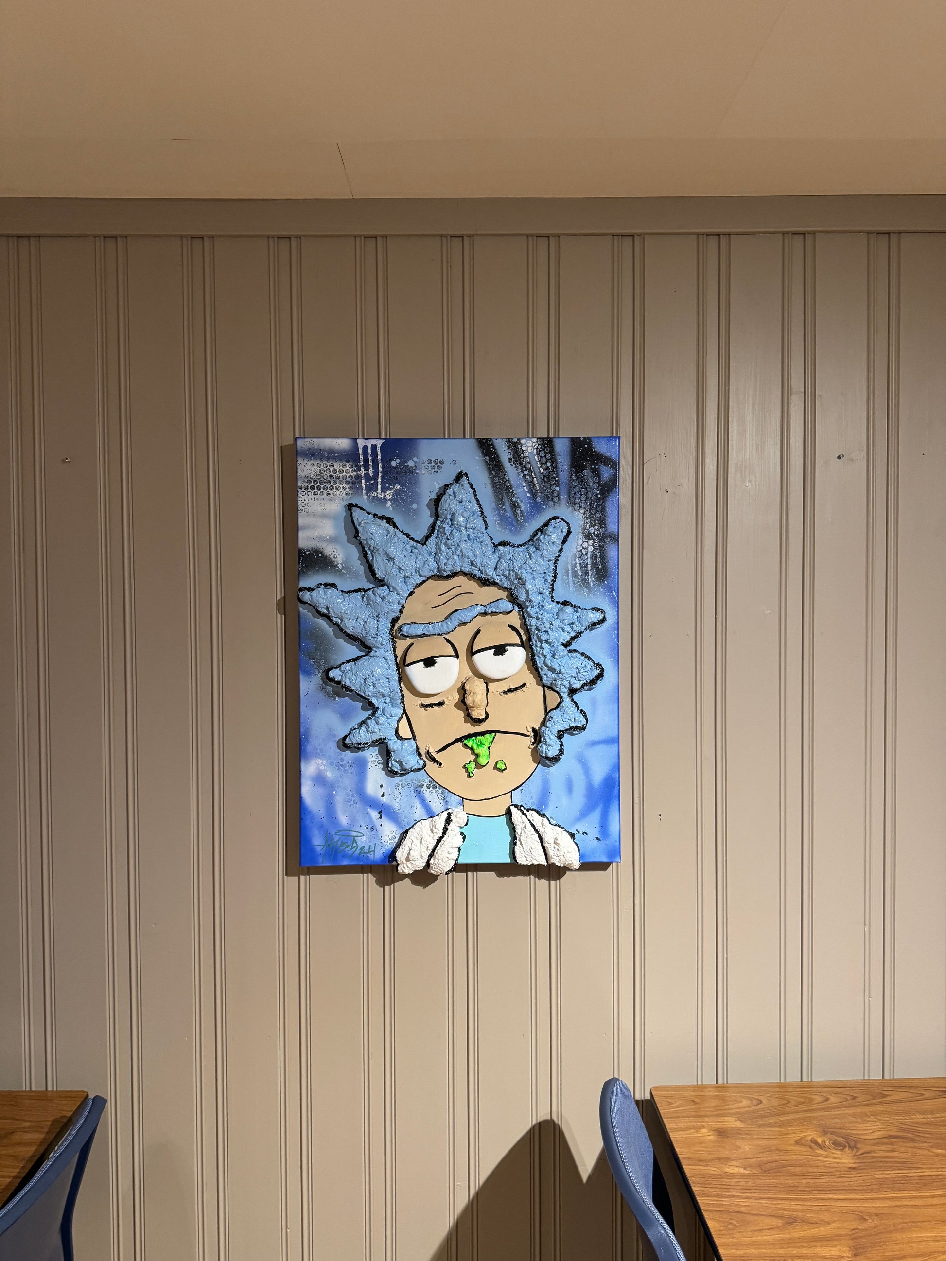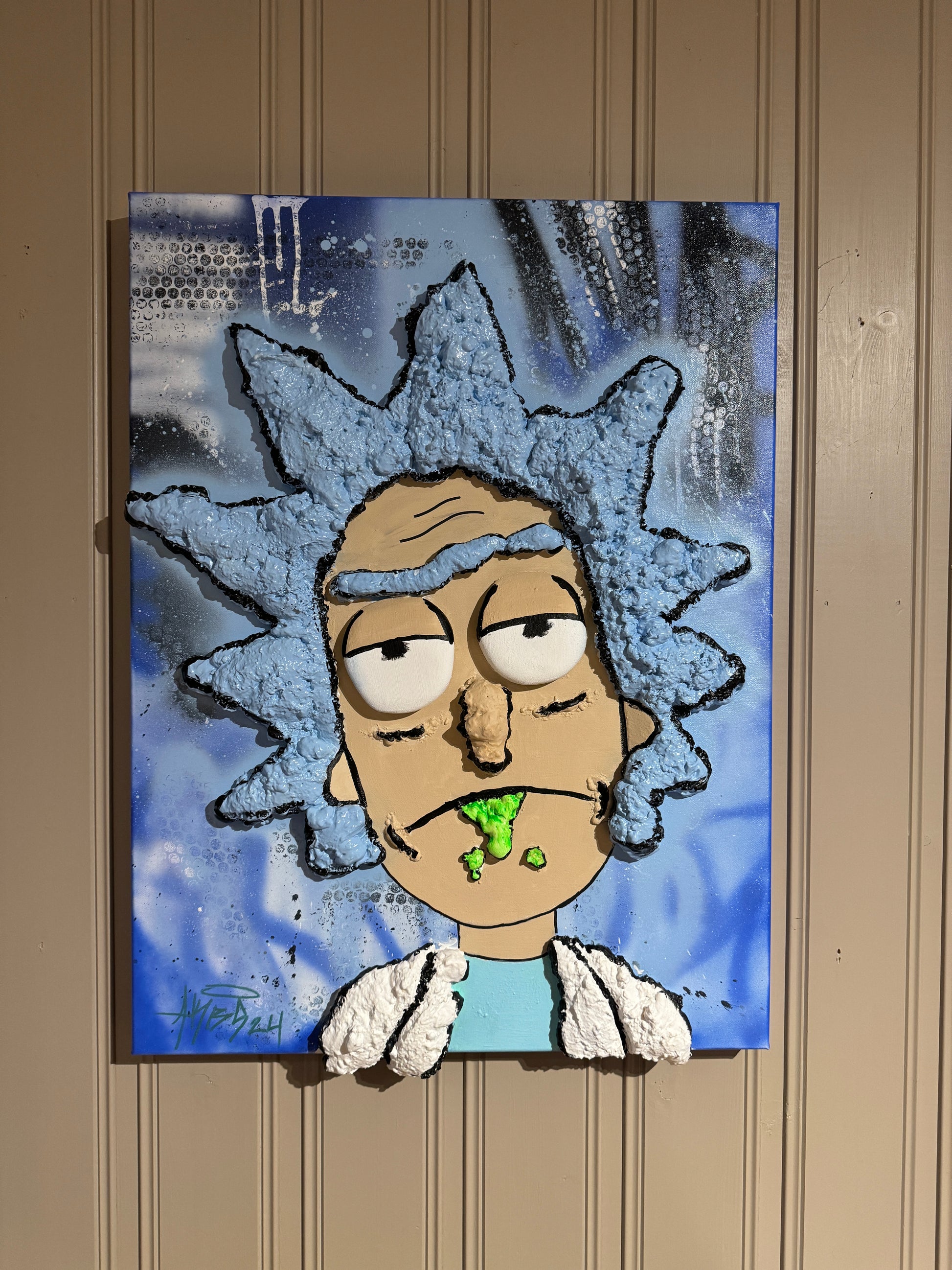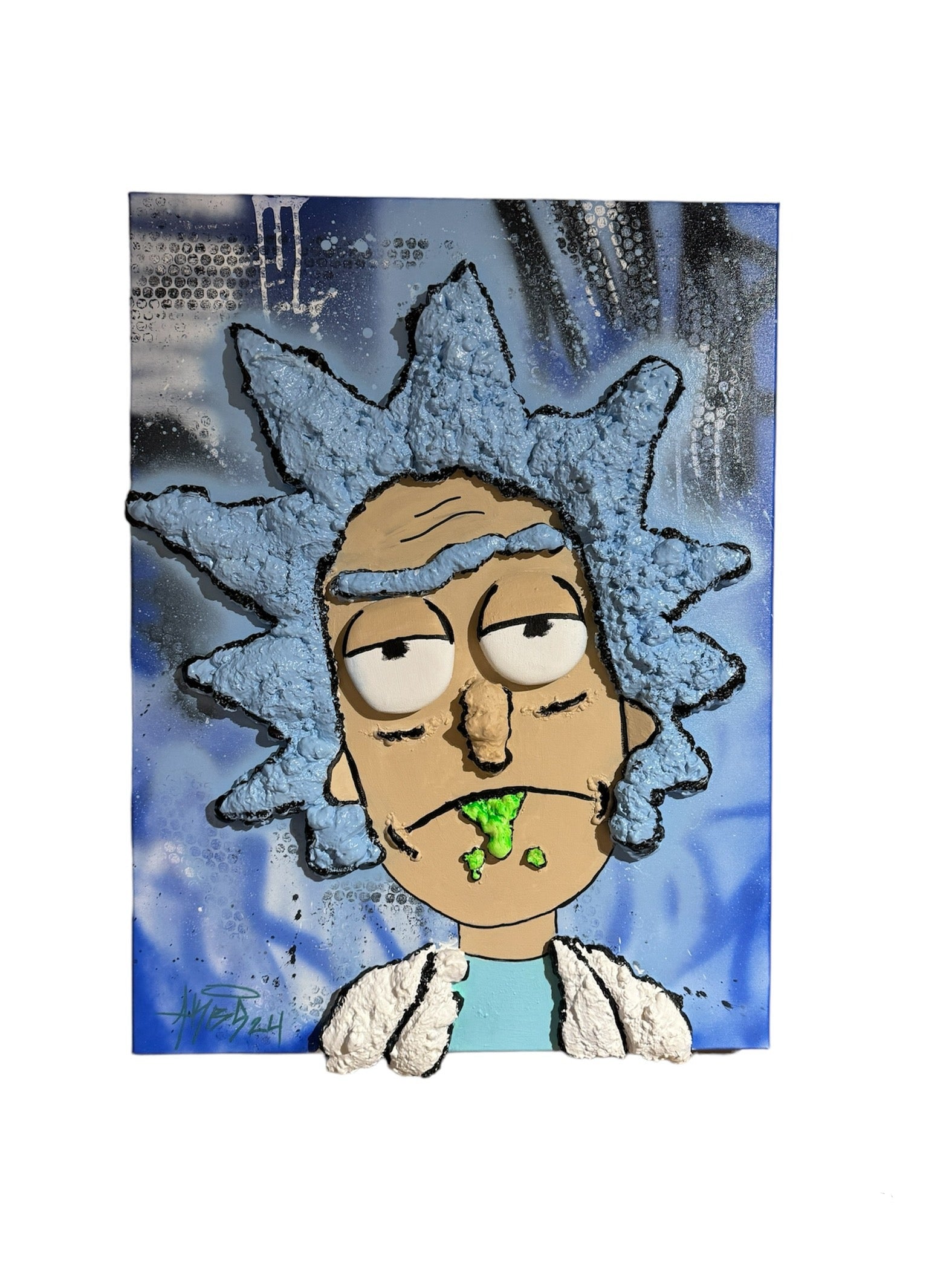Rått 3D bilde av Rick Sanchez fra serien «rick and morty» på kvalitets lerret.