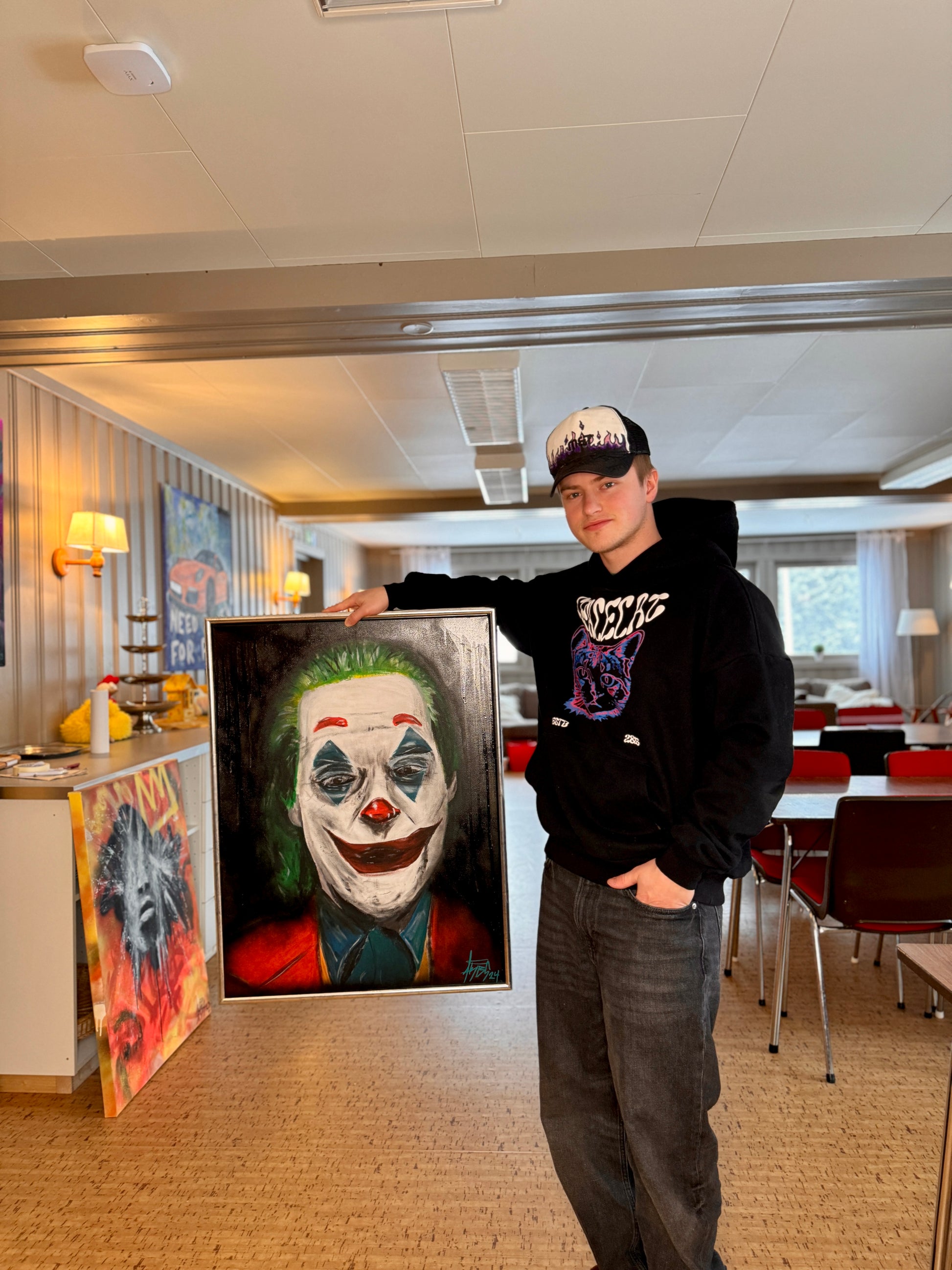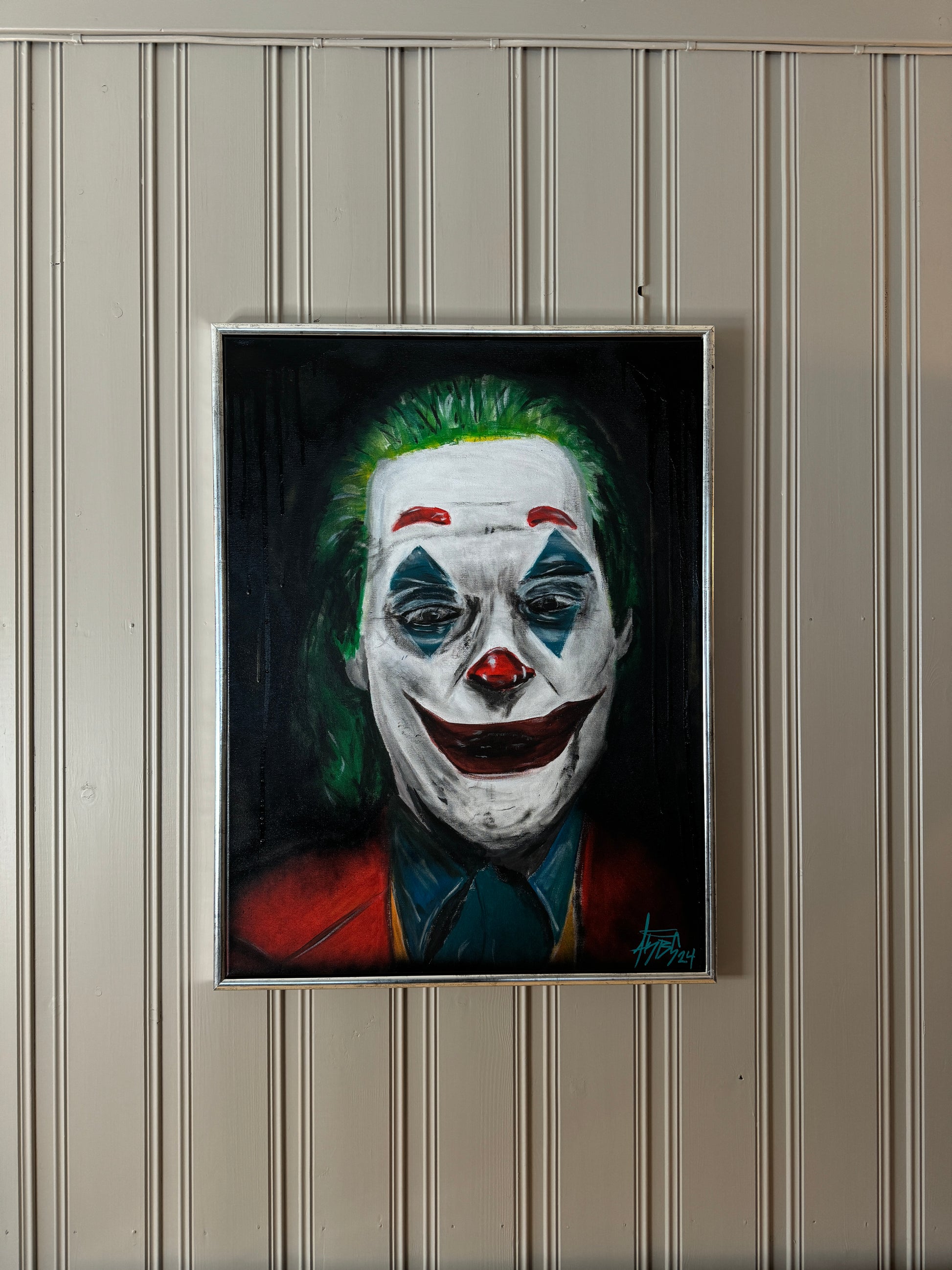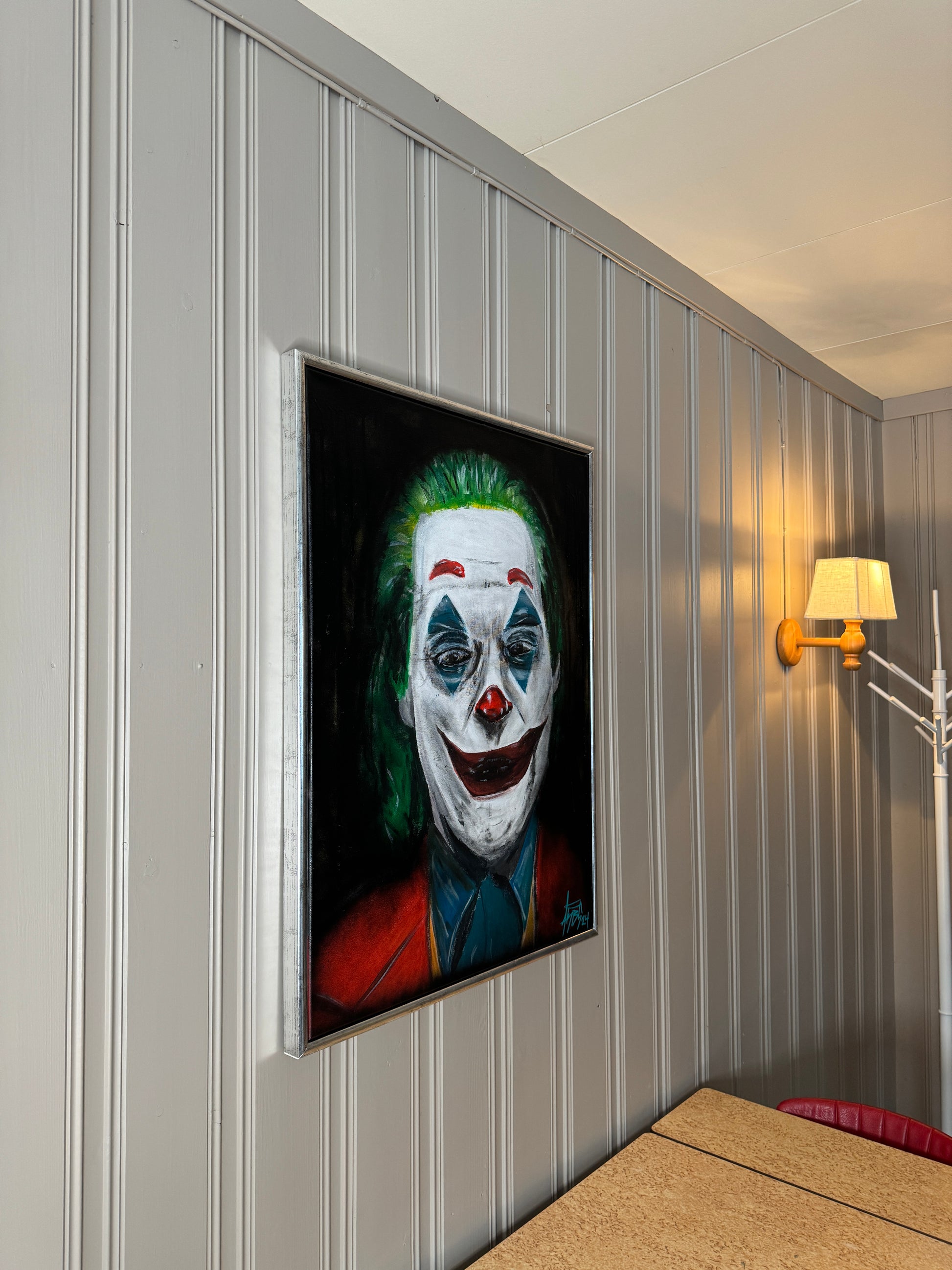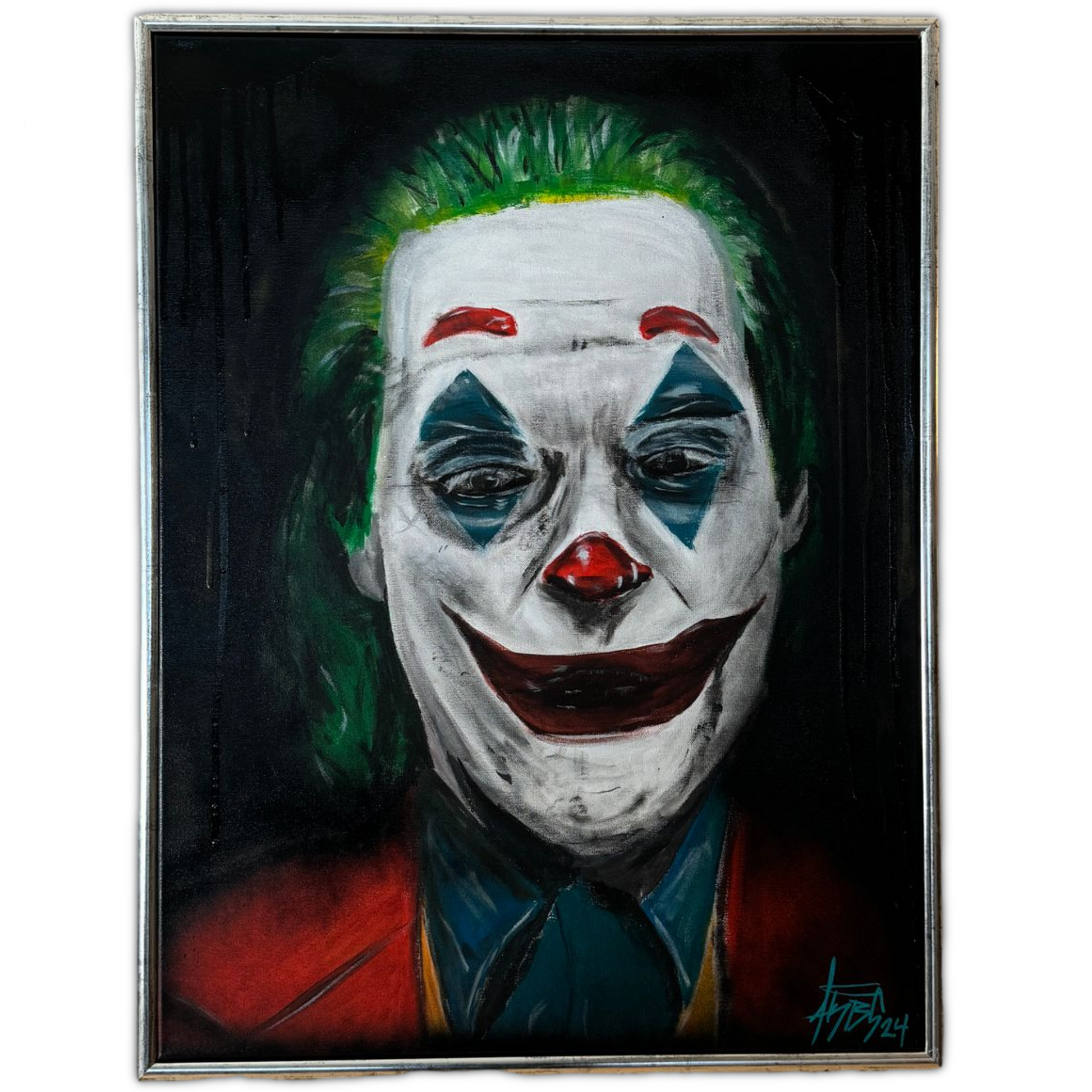 Portrett av the joker, med mørk bakgrunn får fram dette bilde skikkelig.